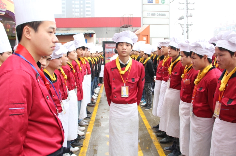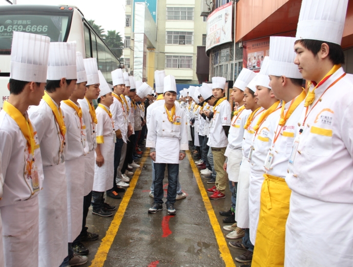 晨会过后,学子们各自进入教室,开始一天精彩的学习内容,课堂上有老师幽默风趣的讲解,还有同学们一丝不苟的认真听课,教室里充满了浓郁的学习气氛,不时爆发出雷鸣般的掌声;下午,是检测学子们能力的时刻,同学们各自带上各种工具,在干净敞亮的大厅练习刀工、雕刻、面塑、糖艺、中点、西点等等,因为十年磨一剑,纯熟的技艺是不断练习出来的。所谓磨刀不误砍柴工,只有锻炼出炉火纯青的烹饪技能,才能成为真正的厨师精英。在广西华南烹饪学校的每一天,你会感觉到过得很充实很快乐。