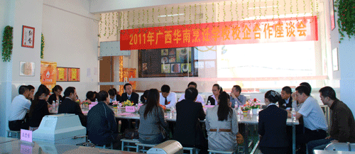 为加强学校与企业间的合作,不断满足企业人才需求,11月15日上午我校与市内11家餐饮企业举行座谈会,共同研究和探讨职业教育与市场人才需求接轨等问题,当天还举行了隆重的互赠牌匾仪式,学校从此成为企业的“人才培养与储备基地”,企业成为学校的“就业与实训基地”,学校努力为华南学生创造良好的学习和实践的平台,为社会培养更多实用的技能人才,有效的促进职业教育与地方经济的发展。