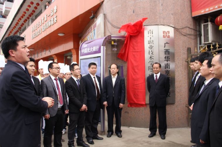 3月28日上午,广西名厨专业委员会秘书处揭牌仪式在我校隆重举行,我校中国烹饪大师黄盛,校区领导朱伟和广西烹饪餐饮行业协会会长、国家级高级评委曾大文先生、广西烹饪协会常务副会长、国家高级评委何逸奎大师共同为秘书处揭牌。学校各科老师代表及学生出席了揭牌仪式。