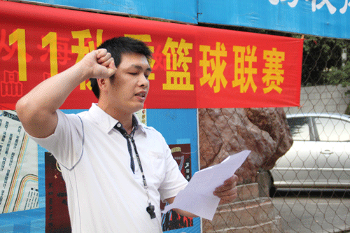 2011广西华南烹饪学校举行秋季篮球比赛开幕布仪式现场
