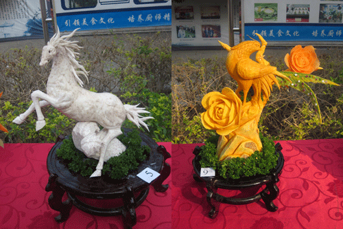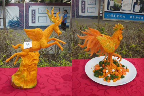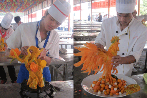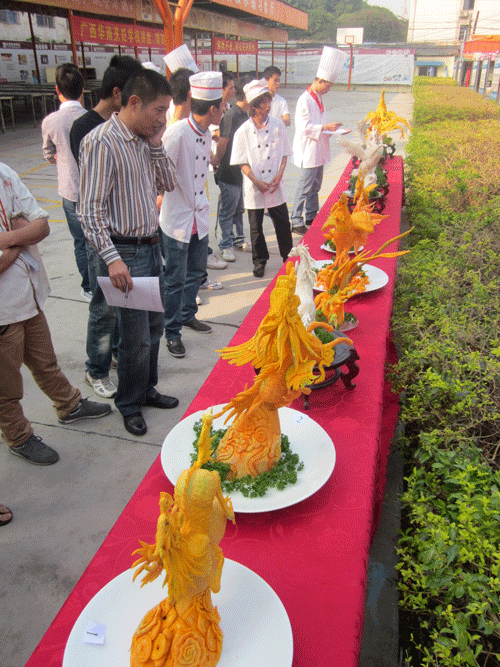 据了解,花卉雕刻也是在烹饪装饰点缀中常用的装饰方法,进行此次考核的目的是检测同学们的雕刻水平和雕刻技巧,激发同学们对雕刻艺术的兴趣,同时以考试的形式让各位同学之间互相切磋,让每位同学都能够从中吸取经验,扬长避短,进一步提高个人的雕刻技巧。