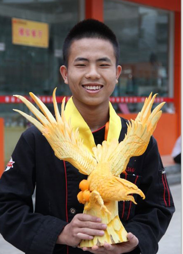 此次两年制大厨126、127班的雕刻阶段考核又是一次提升学生雕刻水平的机会,这个班级已经在广西华南烹饪学校学习了一年多的时间,雕刻技术和其它烹饪技术都相当熟练,但是他们还是没有放松学习的劲头,每一次的练习都是一个提升和成长的过程。在阶段考核的过程中,可以让老师及时发现学生雕刻出现的问题,及时让他们认识到自己的不足,这样才可以让他们有进一步的提升。