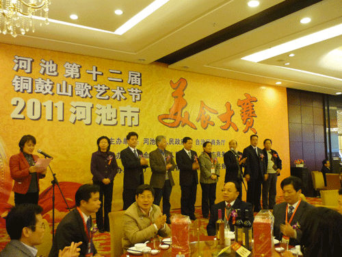 12月9日下午,第十二届铜鼓山歌艺术节2011河池市美食大赛在河池市锦都国际大酒店隆重举办,我校朱伟老师带领金牌班几名学生参加了此次大赛。