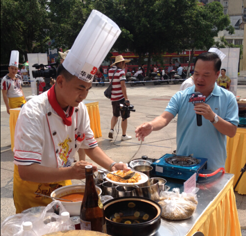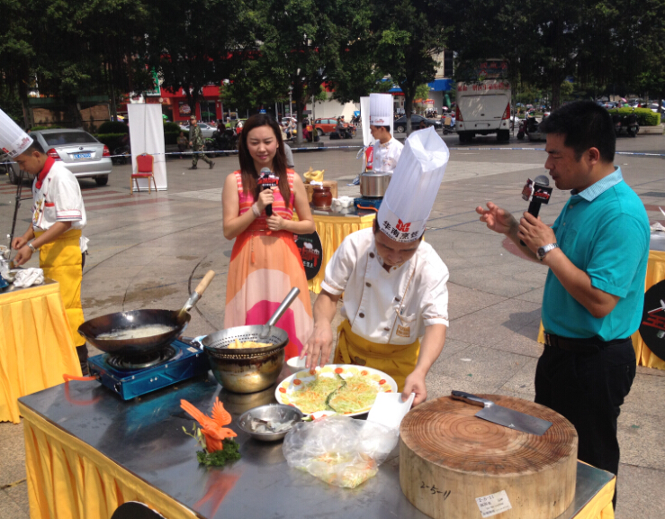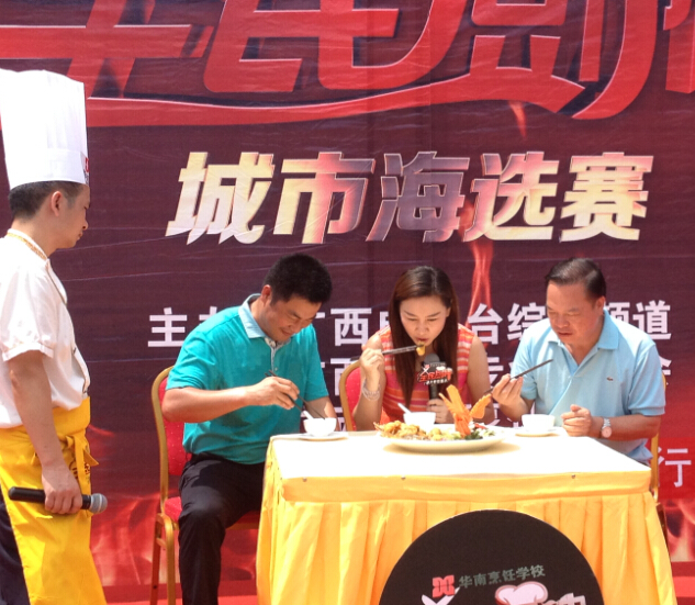 近日,由广西电视台综艺频道携手华南烹饪学校,广西名厨专业委员会联合举办的《全民厨神》第二季海选赛在广西玉林青年广场隆重举行。《全民厨神》作为甄选广西美食,寻找民间烹饪达人一档节目,受到了广大人民的热烈欢迎,玉林海选赛现场同样受到了人们的热烈欢迎。四位玉林民间美食烹饪高手争夺两席南宁复赛的资格。