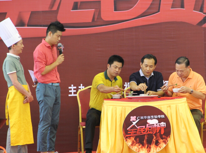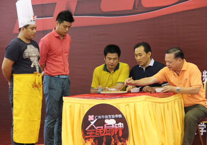 6月12日上午,广西综艺频道——《全民厨神》第二季10进6烹饪比赛在我校激情上演。担任此次比赛的评委依旧来自广西华南烹饪学校的专业负责人、就业指导中心主任、广西名厨专业委员会副主任朱伟;中国烹饪大师、国家级评委闭思惠;中国烹饪大师、国家级评委王卫东。