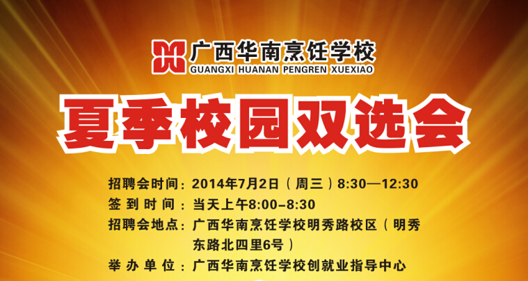 广西华南烹饪学校2014年夏季校园双选会即将开幕