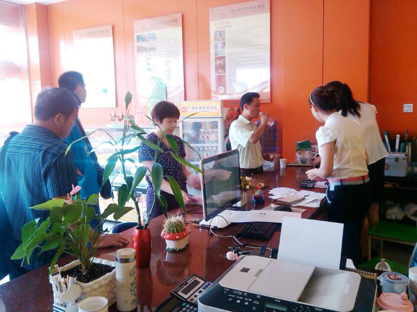 从上午到下午,广西华南烹饪学校咨询报名大厅火爆报名排队场景。来自河池大化、玉林博白、陆川;百色田阳、隆林,靖西;崇左大新;钦州钦南区、灵山;贵港桂平;南宁武鸣、横县、马山;贺州;广州等地大批学生和家长来到广西华南烹饪学校报名;华南报名大厅热闹非凡,家长们谈论着华南烹饪学校的成功学子现在如何在外赚钱,如今放心把孩子交给学校;炎热的天气也挡不住家长学生的报名热情,报名现场感人的事一幕幕出现,在为孩子交学费的时候,很多家长互相礼让,自觉排队,让在场老师也为之感动;甚至有的家长从上午到下午四点还没有吃午饭,家长说:“为了孩子能报名在华南学习厨师,饿点没有关系,只是希望他在学校好好学习技术,将来能够走向成功……,”老师们听到这样的话,眼眶湿润了……,这是家长对我校多么中肯的话,这也彰显了我校办学的口碑和品牌实力。感谢家长们对我们工作的理解和对学校的支持……看到家长成功为孩子报名缴费后开心的笑容,我们再次感动……。