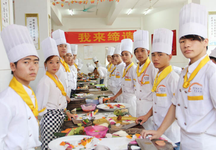 2014年7月11日,广西华南烹饪学校大厨精英137班的同学们在明亮的刀工厅里进行了拼盘阶段考核。学子们精彩的作品组成了一道靓丽的校园风景线。