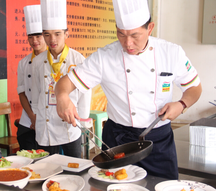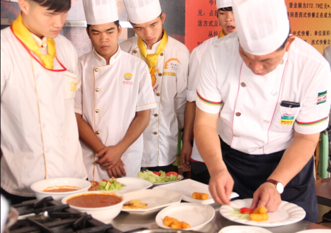 在广西华南烹饪学校严格要求自己的每一道工序是唐老师对学生们的要求,他总是在课堂上强调:“将心比心,一定要把你做的每一道菜想象成端给顾客的,你要从造型、味道、摆放等各个方面考虑顾客的要求,顾客是不是满意,严格要求自己才是对未来负责。”从第一节实操课同学们手忙脚乱的场面到今天同学们有条不紊的制作每一道老师示范的菜肴,这期间同学们经过了反复的练习,如今的西餐专业同学们已经能够完美的重现老师的示范菜,但仅仅还只限于动作和制作工序,至于味道那还要多加强学习。