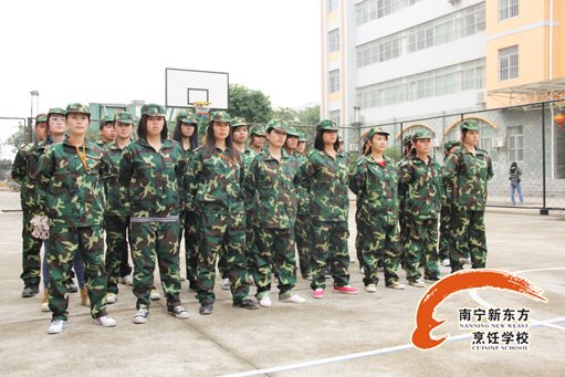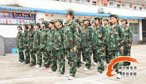 一张张稚嫩却又坚定的面孔,一个个身穿军装的新生,一排排整齐的队伍,形成了广西华南烹饪学校近期最亮丽的一道风景线。