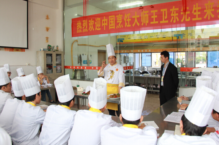 为了让学生能够学到更扎实、更高超的烹饪技能,开阔同学们的眼界,营造学校良好的教学氛围,提高对烹饪文化的认识。11月11日下午,广西华南烹饪学校邀请了中国烹饪大师、广西名厨专业委员会王卫东大师现场授课,我校学子齐聚多功能大厅,一睹王卫东大师的烹饪风采。