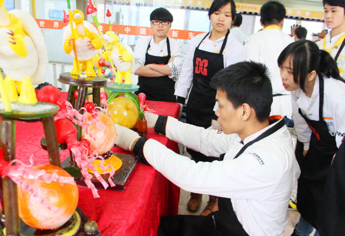 糖艺作为一门艺术,在国际西点市场早已是盛名在外。近日,在广西华南烹饪学校的金牌教室展台上出现了这样一幅绝美的画面,闪亮的糖艺作品活灵活现的摆放在鲜艳的展台之上,让参观的学生顿时尖叫称奇。这就是广西华南烹饪学校糖艺晚班的成果展,他们为这个冬天送上了又一道靓丽的风景线。