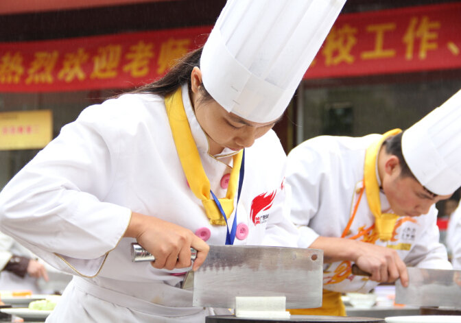 万物复苏的早春,虽然下着蒙蒙细雨,但是也阻挡不了同学们的学习热情。3月14日,在广西华南烹饪学校明秀校区广场上,华南烹饪学校“2015年刀工擂台赛”正式打响,整齐队伍,精彩的刀工成为了学校一道亮丽的风景线。