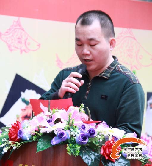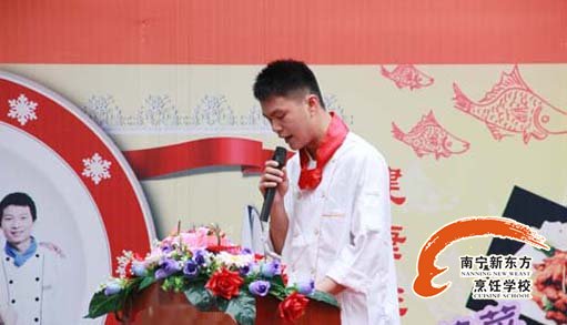 招聘会的开幕式由陈新操老师主持,此次双选会广西华南烹饪学校邀请了金牌合作单位——桂景大酒店行政总厨蓝杰先生进行了讲话,他鼓励在场所有的同学对未来要充满信心和勇气,并预祝此次双选会圆满成功。之后由112班的刘增发同学作为毕业生代表,进行了慷慨激昂的发言,他的发言赢得了参会企业和同学们的热烈掌声。他感谢师恩、感谢母校,感谢广西华南烹饪学校教给他做人的道理,教会他精湛的技能,让他在未来的道路上信心百倍。
