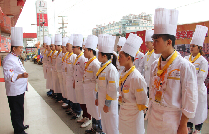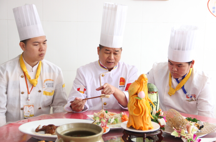 金牌六班的同学们经过在学校的学习,从最基本的刀工、翻锅开始,然后学习热菜、雕刻、冷拼、宴席……几天一小考,一月一大考,每前进一步,他们就往厨师的梦想更近了一步。他们收获了老师的赞许,同时也得到了自己对自己的肯定,如今,经过一段时间的宴席学习之后,他们用最饱满的激情迎接了这次宴席赛事考核。