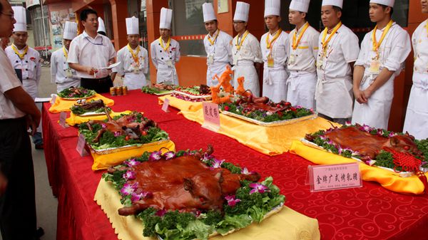 熟知的各种卤菜口味,无一例外是以辣为主味,而广式烧卤则鲜香清淡,烧卤包括烧鹅、叉烧以及一些卤水菜式,一般是先用秘制的酱汁腌制一段时间再放到炉里烤,口味略带甜味。烧腊一般指烧烤、卤渍、腊制的肉类食品。广式烧腊历史悠久,外形美观,风味独特。广式烧味中,最享盛名的就是烧乳猪,又叫烧金猪。下面我们就来看烧腊晚班同学们的学习成果。