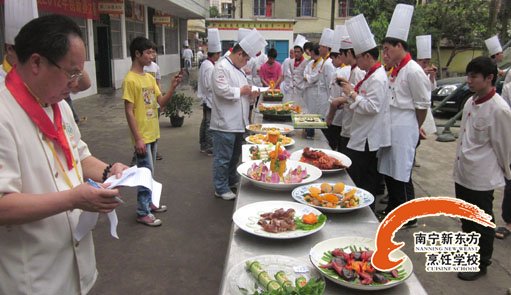 广西华南烹饪学校一贯注重培养学生的技能和素质,经常为学生提供大量学习实践的机会。为了培养学生成为符合社会需要的复合型、专业创新型人才,于3月21日隆重举行了创新菜大赛。此次创新菜大赛由明秀校区主办,明秀校区各金牌名厨担任此次大赛主要评委。