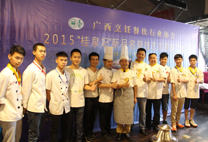 我校学子与广西烹饪餐饮协会副会长何逸奎大师合影