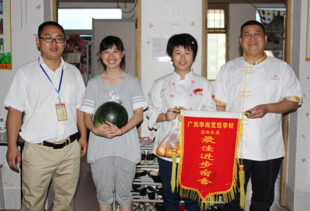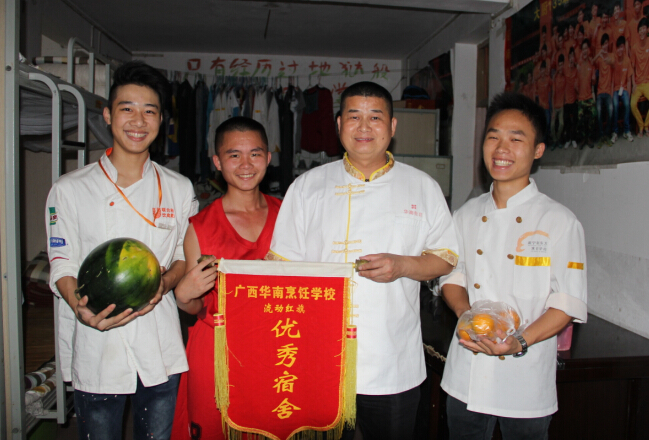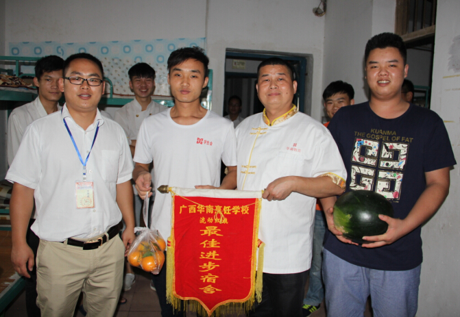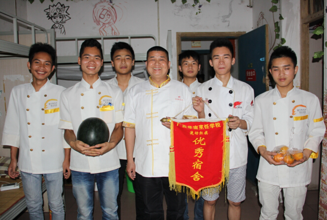 为了改善寝室环境卫生,提高学生生活质量,让学生养成良好的生活习惯,有一个舒适、卫生、和谐的学习环境。近日,广西华南烹饪学校教务主任黄盛大师、校区主任赖学学、教学督导杨罗银、学生会主席唐海涛及教务科各科教师代表检查了校区学生宿舍卫生。