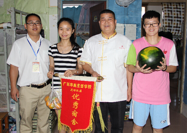 黄盛大师带领检查小组进入学生宿舍,仔细地检查了同学们宿舍的阳台、卫生间、物品摆放等方面。首先,黄盛大师对同学们宿舍的卫生情况给予了充分的肯定。同时,检查小组在检查过程中也发现了各个宿舍存在的问题,针对个别宿舍卫生没有打扫干净,物品没有摆放整齐老师们提出了整改的建议。检查过程中,黄盛大师还关切地询问同学们生活、学习上是否存在问题,并与同学们进行了深入的交谈,并为获奖的优秀宿舍颁发了流动红旗和奖品。