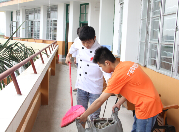 为了营造一个洁净良好的学习环境,提高广大师生的环保意识,进一步推进校园文化建设,近日,广西华南烹饪学校中尧校区全校师生共同参与到校园环境和教室卫生的清扫中。新校区,新起点,同学们齐心协力打扫新校区,为学校建设添砖加瓦。