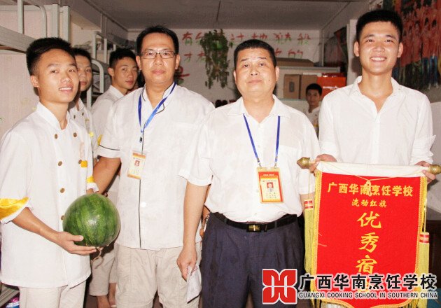 为了进一步激发同学们创建文明寝室的热情,培养学生良好的生活习惯,改善寝室环境卫生,提高学生宿舍卫生质量,有一个舒适、卫生、和谐的学习环境。近日,广西华南烹饪学校教务主任黄盛大师、校区主任赖学学、教学督导杨罗银、学生会主席唐海涛及教务科各科教师代表检查了校区学生宿舍卫生。