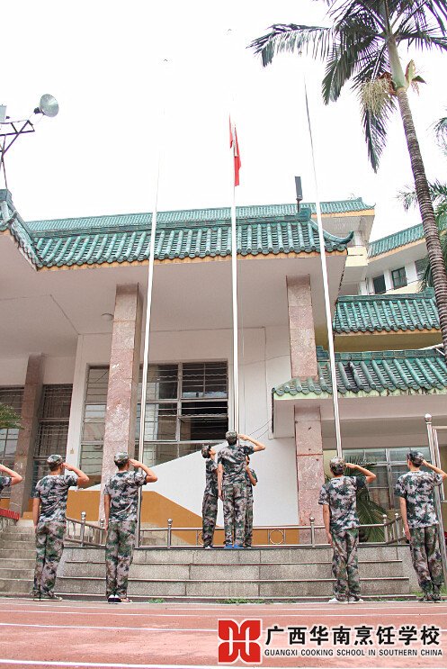 广西华南烹饪学校隆重纪念抗日战争胜利70周年升旗仪式
