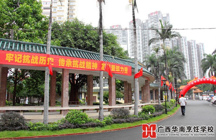 广西华南烹饪学校校园里到处弥漫隆重的纪念氛围