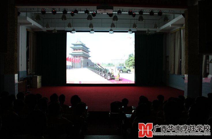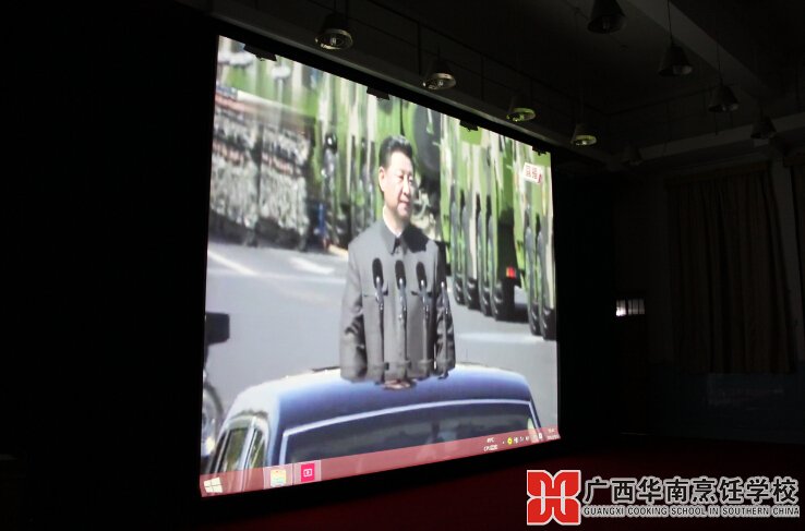为抒发全校师生的爱国主义情怀,表达我们内心无比激动的心情,同时为培养学生的国家荣誉感,为阅兵加油助威。广西华南烹饪学校将在大礼堂、多媒体教室观看天安门阅兵盛况!不用去北京,照样看阅兵!希望借此阅兵,能让同学们感受到国家的繁荣与昌盛,从而帮助大家树立正确的人生追求,毕业后用自己扎实的烹饪技能为国家发展添砖加瓦。