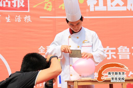 我校学子展绝活,钉子顶气球切萝卜丝