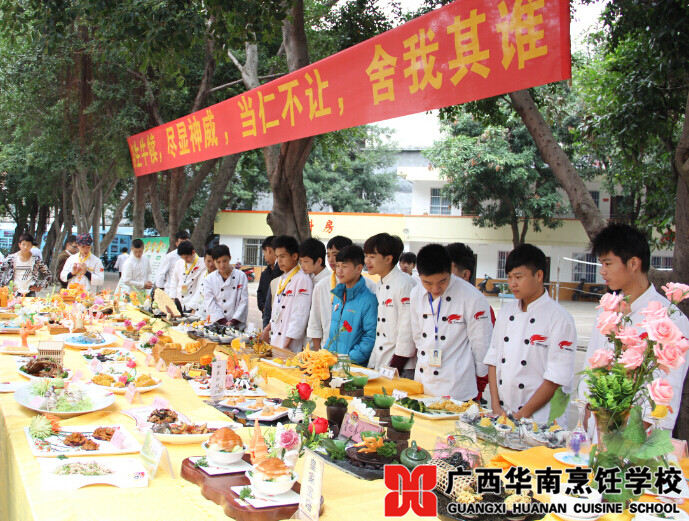 为了丰富同学们的课余生活文化,提高学生实际动手能力,激励学生认真刻苦的学习,激发学生积极向上的精神,展现华南学子的学习成果。近日,备受社会各界关注的2015年广西华南烹饪学校“校园名厨杯”烹饪技能大赛,在学校教务处的精心组织和安排下隆重举行。