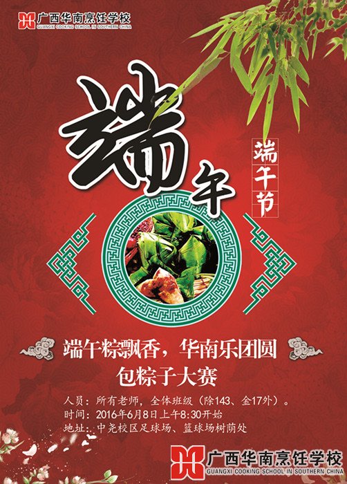 端午临中夏,时清日复长。五月初五端午节即将到来,为更好地弘扬中国优秀传统美德,让全体师生一起亲手包粽子,体验节日里不一样的乐趣,让粽子这个拥有几千年的历史的文化更好的传承下去,广西华南烹饪学校将于6月8日(本周三)推出“端午粽飘香 华南乐团圆包粽子大赛”。