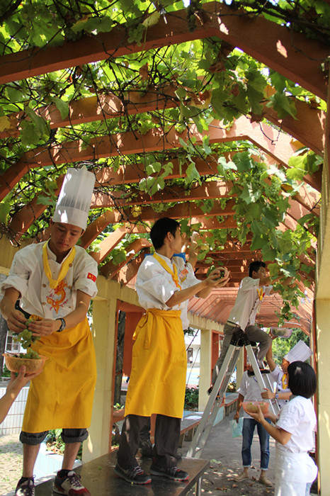 7月8日下午,我校的部分师生共同采摘校园内种植的葡萄,共同感受收获的喜悦。