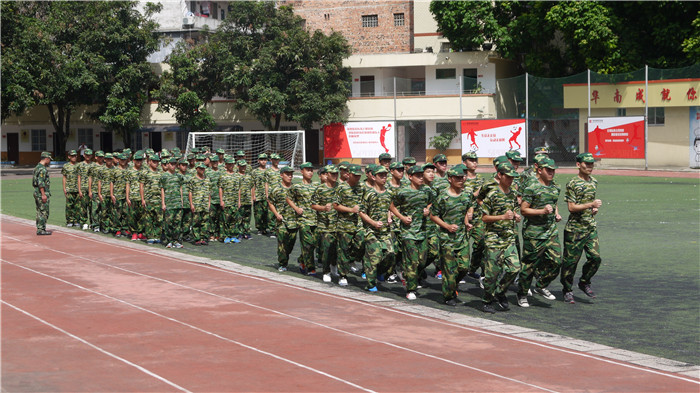 军训在强化同学们的国防意识,增强组织纪律观念,培养坚忍不拔的意志品德、吃苦耐劳的优良作风、团结拼搏的意识追求方面起着不可替代的作用。我校历来重视新生军训工作,将军训视为增强学生体质、磨练学生意志、锻炼学生品格的重要课堂。我校精心安排训练内容,帮助新生锤炼品格、规范行为。学校领导、班主任老师全程陪伴,给学生们无微不至的关怀与指导;后勤服务老师为学生搭配精美的营养套餐,帮助新同学解决生活上遇到的各种困难;
