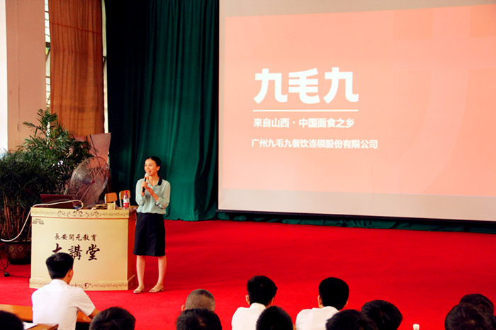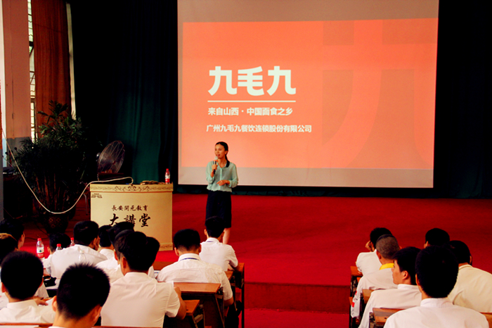 2016年8月5日上午9时,广州九毛九餐饮连锁股份有限公司人力资源部一行人来到我校做招聘宣传工作,受到学校领导、老师及即将毕业学生的热烈欢迎。