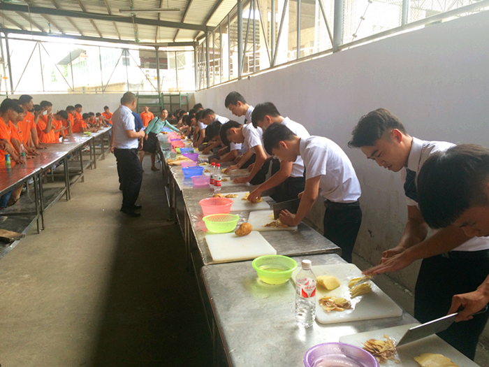 招聘宣传工作在我校大礼堂开展,九毛九餐饮公司的负责人从九毛九的发展历史及雄厚的整体实力讲起,提及九毛九餐饮公司独特的管理模式和特色的风格。最重要的是谈到了公司对员工的培养方式和开放的发展空间,这让在场即将毕业的学生兴奋不已,不时掌声四起,气氛非常活跃。随后还对应聘学生进行了刀工考核。