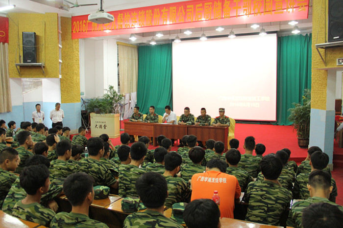 8月15日上午,广西华南烹饪学校2016级秋季新生军训动员大会在大礼堂举行,这也拉开了2016级新生军训的序幕。广西华南烹饪学校副校长朱伟等出席了此次动员大会。