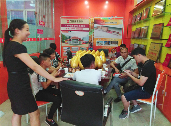 在广西华南烹饪学校的咨询中心前来咨询报名的学生络绎不绝,很多学生和家长来到这里,咨询报名学厨师,打算用实用技术武装自己。校园内汇集来自五湖四海的同学和家长,他们参观校园、选择专业、咨询报名。面对熙熙攘攘前来报名学习的学生,咨询老师们针对他们关心的专业、住宿、生活、学费等问题,有序地接待并耐心解答。这种情况常常持续到深夜。