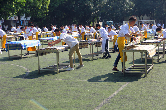通过这样一次叠军被比赛,相信在接下来的军训生活中,每一位广西华南烹饪学校的学子都能尽快的融入军训生活。在学校半军事化教学管理中,除了学到精湛的烹饪技能,更能提高自身的综合素质,让自己成为适合社会发展的复合型烹饪人才。
