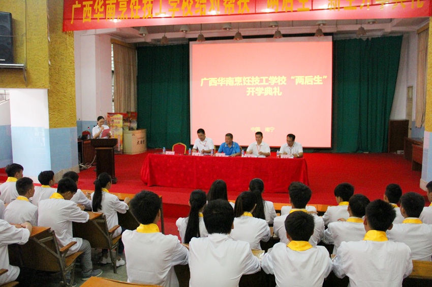 9月5日上午,广西华南烹饪学校中尧校区大礼堂,来自隆林各族自治县贫困家庭的54名未考入大中专院校的初、高中毕业生参加了“两后生”技能培训开学典礼。