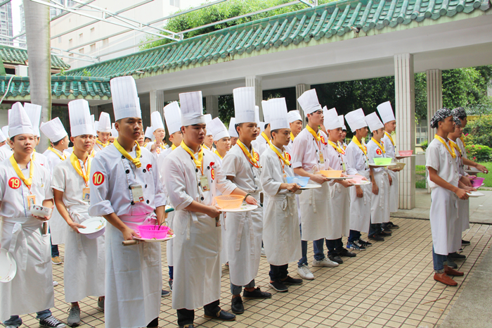 精致的盘式,讲究的色彩搭配,色、香、味的菜品。所以当广西华南烹饪学校金牌大厨班的热菜阶段考核菜品摆出来的时候,又吸引了一批又一批羡慕的目光。考核从最初的基本功到现在的提高阶段,已经过了一年多的时间。菜品展出是他们提高最好的证明。