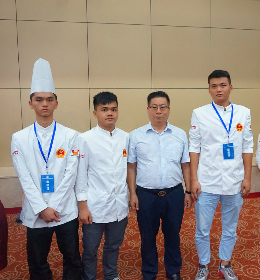 我校参赛学子与中国饭店协会副会长名厨委员会主席石万荣合影留念