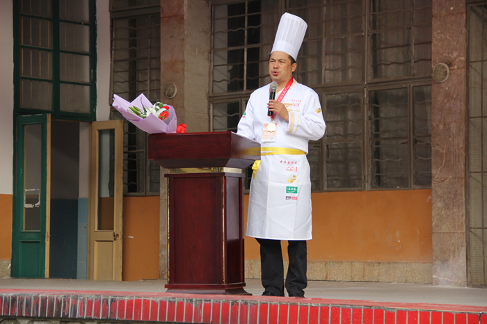 10月24日,在广西华南烹饪学校全体师生的殷切期盼中举行了热烈且隆重的欢迎仪式。 “中华金厨奖”是由中国烹饪协会主办的全国烹饪界最高奖项,每年颁发一次,是为表彰在餐饮管理、烹饪创新、烹饪事业贡献和烹饪教育与理论成果等方面做出突出贡献的单位或个人。广西华南烹饪学校副校长朱伟大师从厨多年,认真汲取国内外厨师培训的先进经验,深化烹饪培训教育模式的改革,使广西华南烹饪学校在厨师培训学校中独树一帜,形成了自己的厨师培训模式和烹饪教育特色,培养了一批又一批的高级技能人才,得到了社会各界人士的信赖,荣获2016年度烹饪行业最高奖项——“中华金厨奖”。