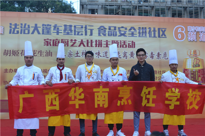 11月27日,由广西电视台综艺频道主办,广西华南烹饪学校协办的《法治大篷车基层行 食品安全进社区》活动在南宁市的广西重工生活区举办, 本次活动是为进一步加强社区居民的食品安全意识,大力宣传有关食品安全方面的法律常识,普及食品安全知识,不断增强辖区居民群众对食品安全的防范意识和自我保护能力。