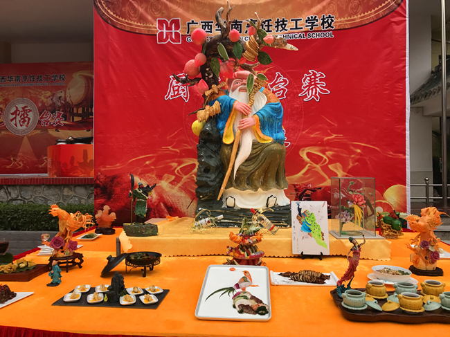3月3日,广西华南烹饪技工学校厨艺擂台赛第三场在中尧校区操场上如期举行。本次比赛是由金牌14班攻擂,金牌13班守擂。