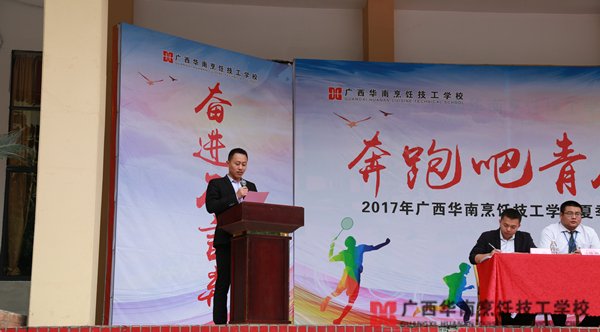 雄壮的运动员进行曲,整齐的方阵,气势磅礴的“欢聚一堂”,构成了广西华南烹饪技工学校运动会最精彩的开幕。申永主任在开幕词中对表示,希望各位运动员能秉着“更高、更快、更强”的体育精神,在本届运动会上奋勇拼搏、敢于争先,展示华南烹饪学子自强不息、勇攀高峰的青春风采,赛出风格、赛出水平,用无限活力和青春风彩,展示广西华南烹饪技工学校学生的风貌!