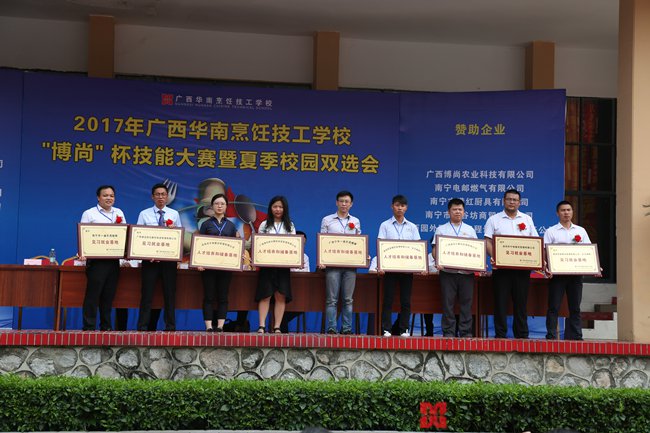 6月15日上午广西华南烹饪技工学校2017年校园夏季大型双选会在学校田径场举行。来自北京、深圳、上海等多个城市的30多家用人单位来到这里挑选人才。这次双选会上多家用人单位共给而学生提供工作岗位200多个,其中有连锁餐馆、大型酒店、各类名企业。我校超过300名学生参加了此次双选会。