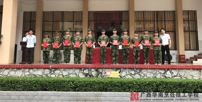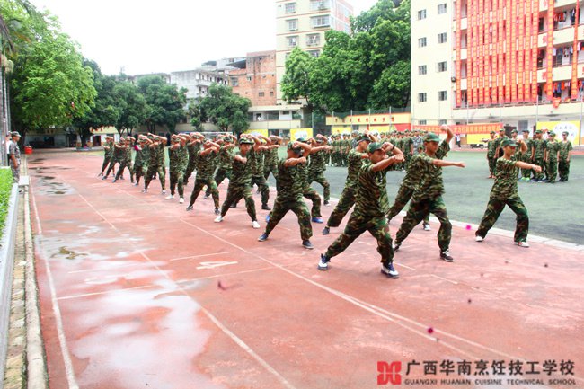 8月4日,经过12天军训的磨砺,广西华南烹饪技工学校2017级秋季新生以飒爽的军姿、嘹亮的口号、矫健的步伐和熟练的军事技能,进行了训练成果汇报展示。