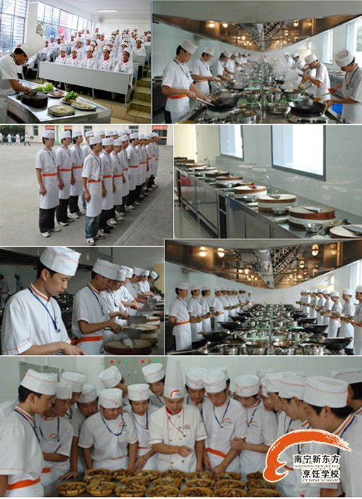 第七:一般人家三星级以上的酒店是不会让大师带徒弟学习的,只有中小型的餐馆才能允许带徒弟,而且师傅特别忙,几乎没有时间理你,你问他,他都特别烦,也不怎么讲。一天下来特别累,还学不到东西,还要挨骂。要学真本事,还是要找一些实操为主的烹饪学校学习,一年下来证件工作都有了,最主要的还是学到了好手艺,建议到老牌专业厨师培训学校——广西华南烹饪学校参观考察,我们是以实践操作为主、理论知识相结合的教学培养模式。