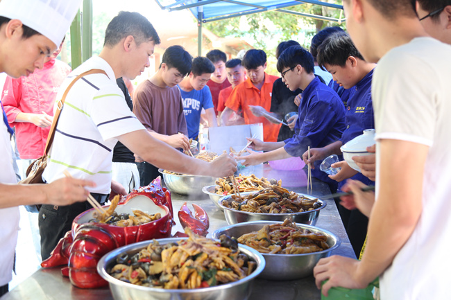 近日,备受欢迎的广西华南烹饪技工学校“大锅现烹田螺掌”美食活动在中尧校区隆重举行。